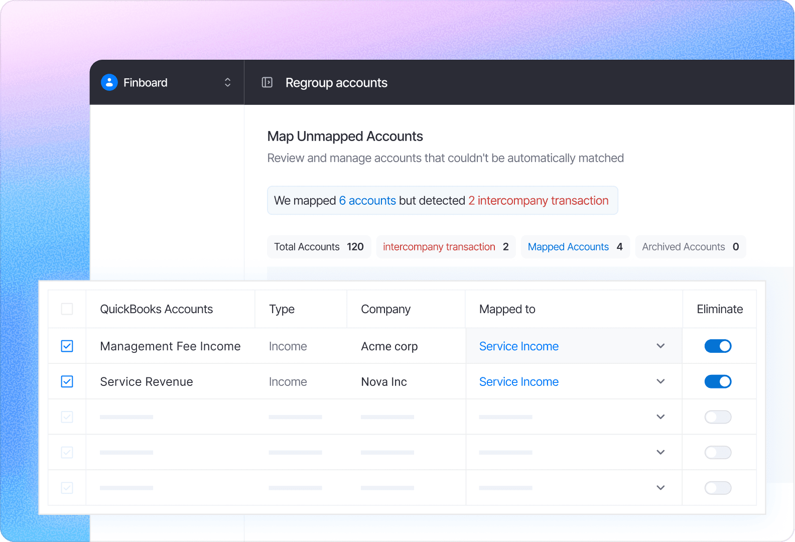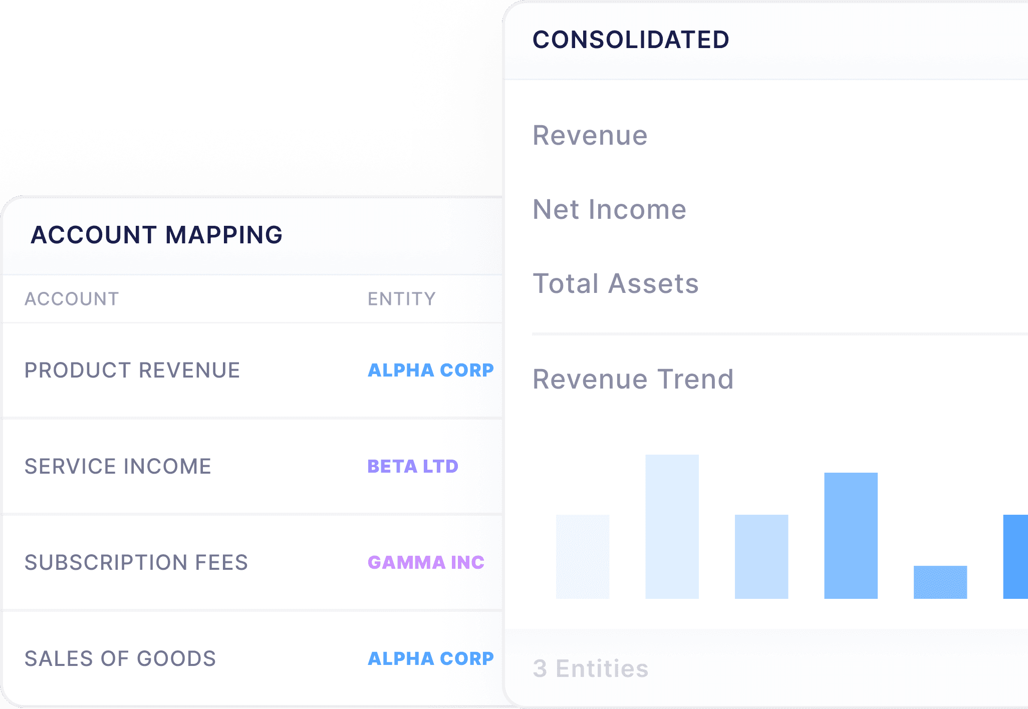 Map accounts across entities and generate consistent P&L and balance sheet structures