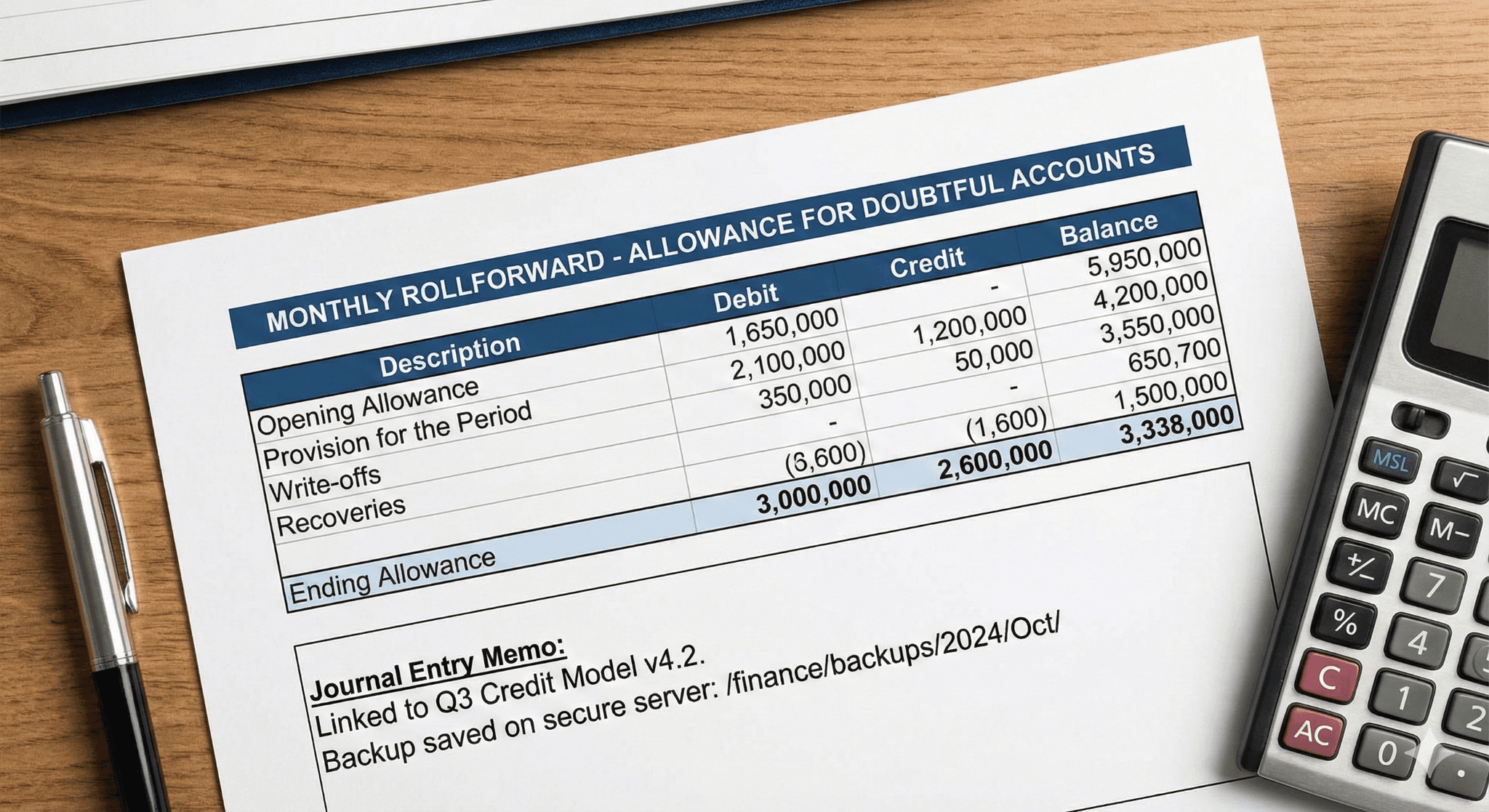 Monthly rollforward: Each month, update vintage with new write-offs and re-calculate. Keep signed approval for qualitative uplift.