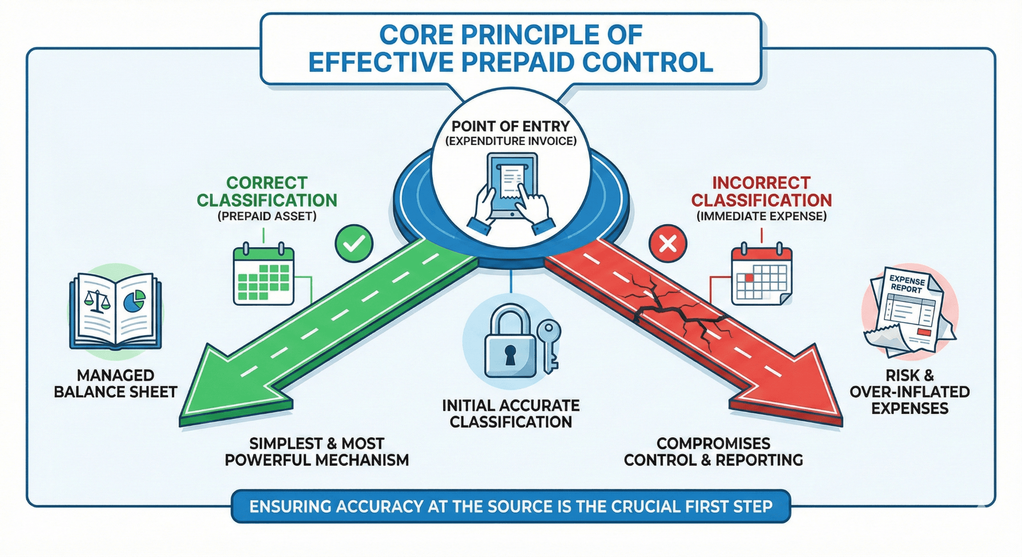 The core principle of effective prepaid control hinges on the most elementary yet crucial step: ensuring correct classification at the point of entry. This initial, accurate classification of an expenditure as a prepaid asset, rather than an immediate expense, is the simplest and most powerful mechanism for managing this balance sheet item.