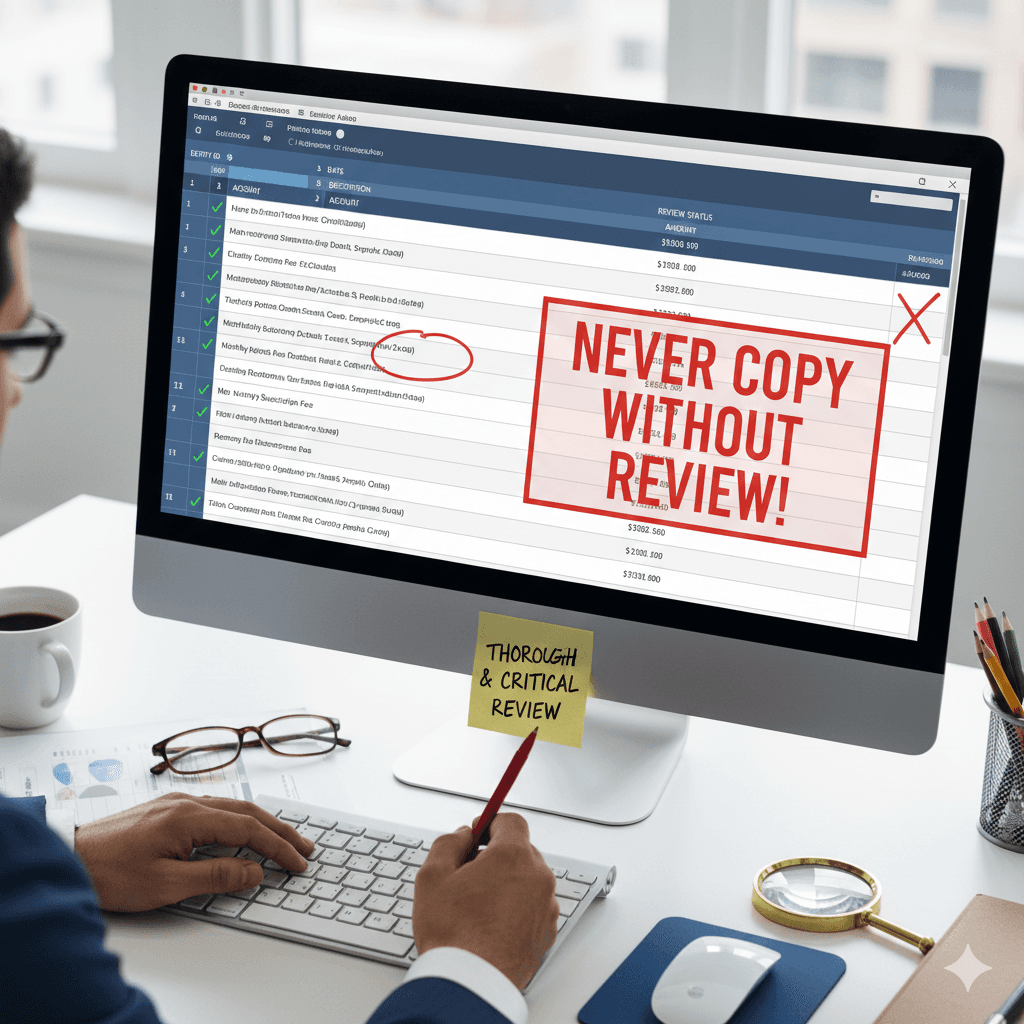 The practice of routinely copying recurring entries without this diligent review undermines the reliability of records and can lead to serious consequences, including financial misstatements, compliance failures, or operational inefficiencies. Therefore, every seemingly repetitive entry must be treated as a fresh, unique transaction requiring individual validation.