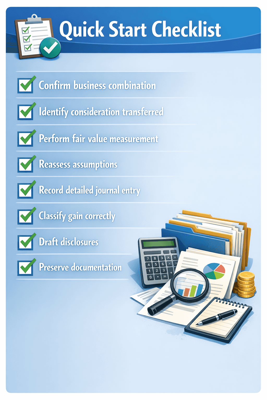 Acquisition accounting checklists