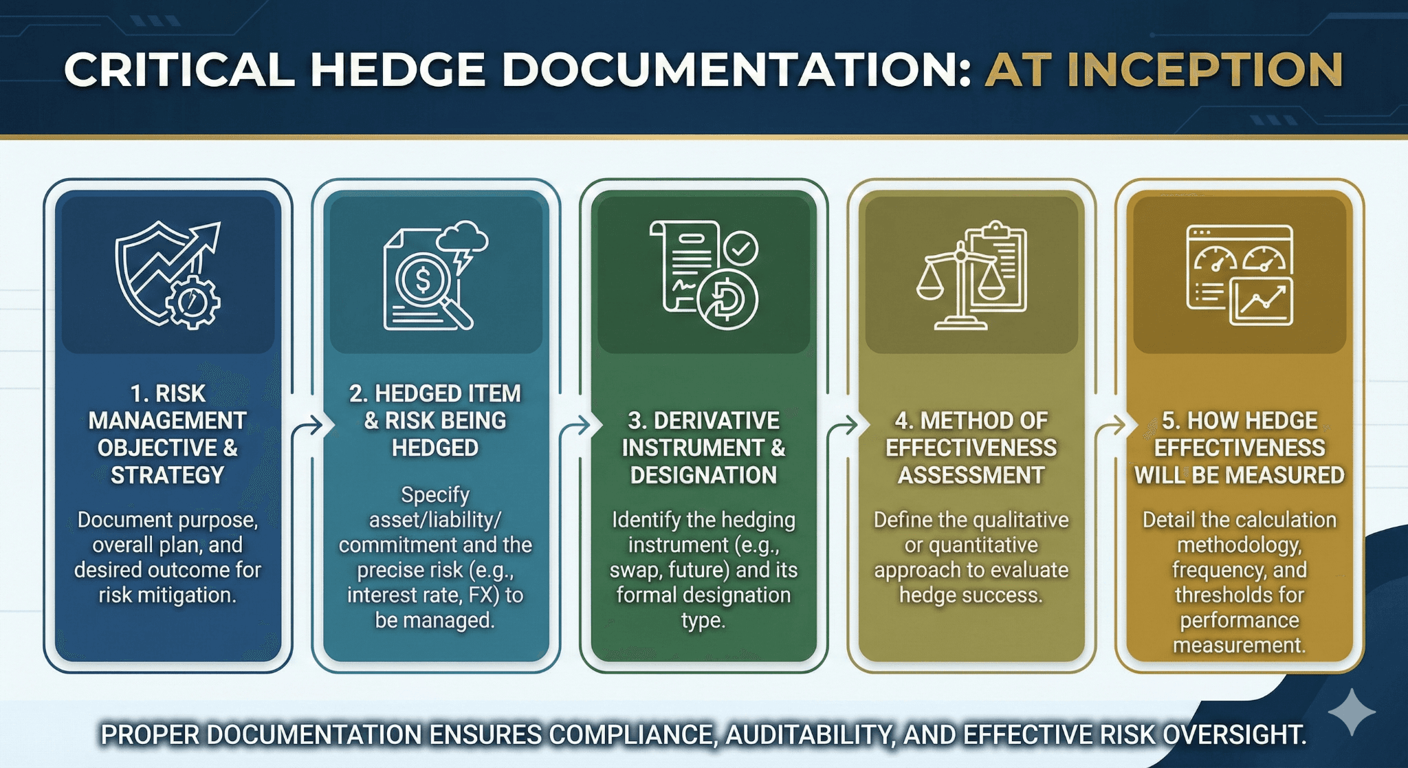 Proper documentation is critical. At hedge inception, entities must document: