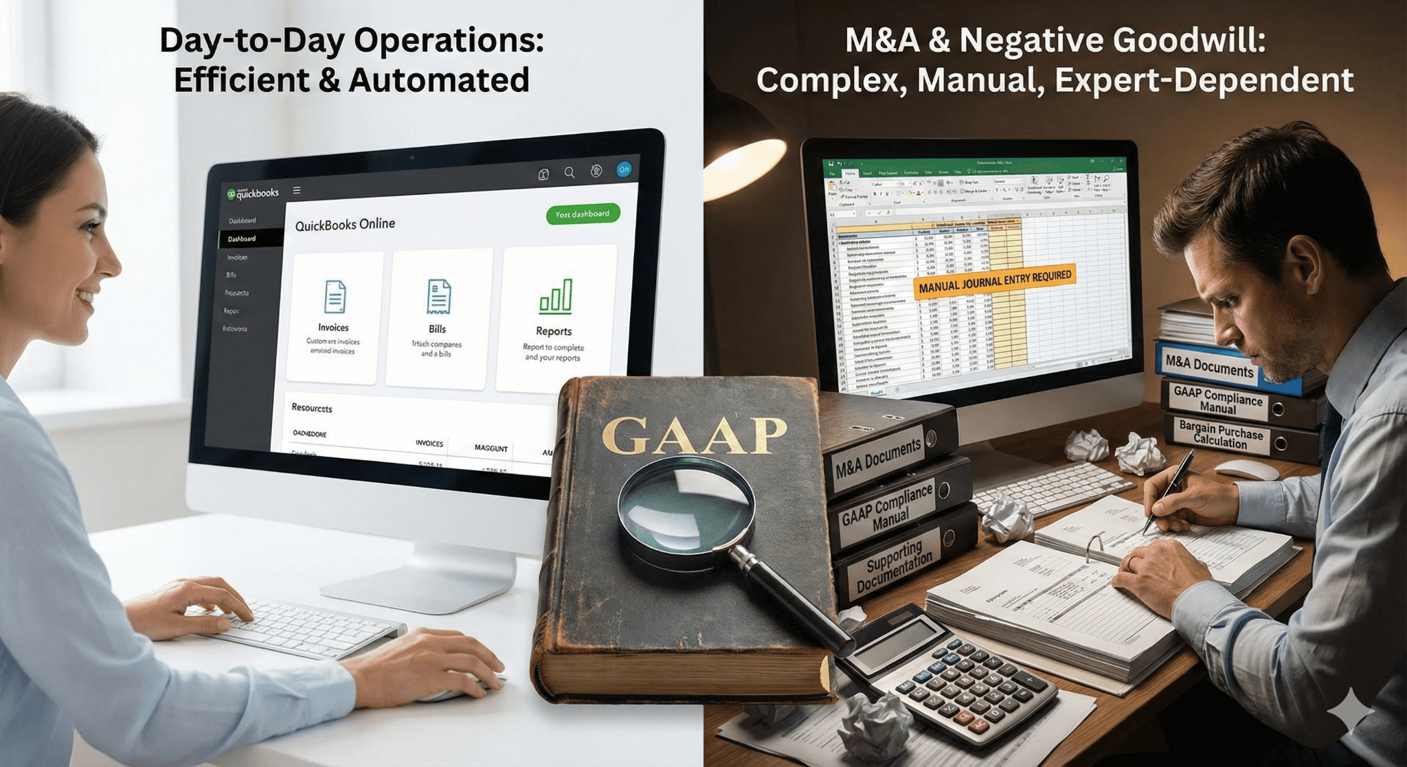 While QuickBooks Online is excellent for day-to-day operations and general ledger management, companies engaged in or anticipating M&A activity that results in negative goodwill will find the platform requires significant manual workarounds and a high degree of accounting expertise to ensure compliance with Generally Accepted Accounting Principles (GAAP). These companies must rely heavily on detailed supporting documentation outside of QuickBooks Online and meticulous manual journal entries to correctly reflect the bargain purchase gain on their financial statements.